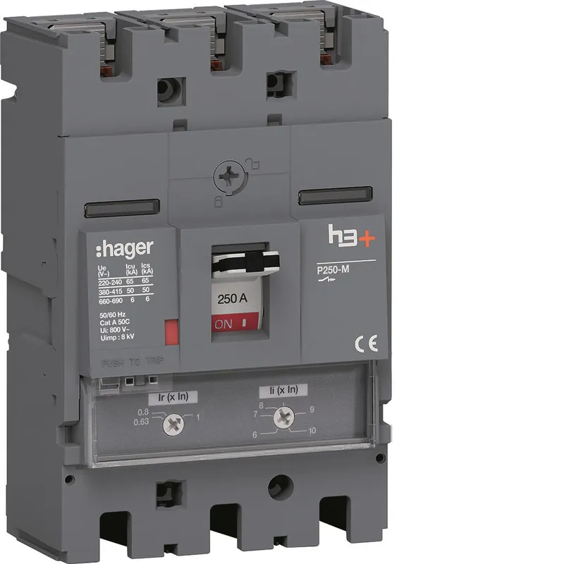 Effektbrytarna h3 + (MCCB) från Hager har brytförmåga upp 50 kA vilket ökar säkerheten utan att kompromissa med driftsäkerheten. Förutom termomagnetiska utlösningsskydd erbjuder h3+ även elektroniska skydd i form av LSI och Energy. Med Energy versionen erhålls fler mät och styrfunktioner såsom energimätning, effekt, ström och spänning.