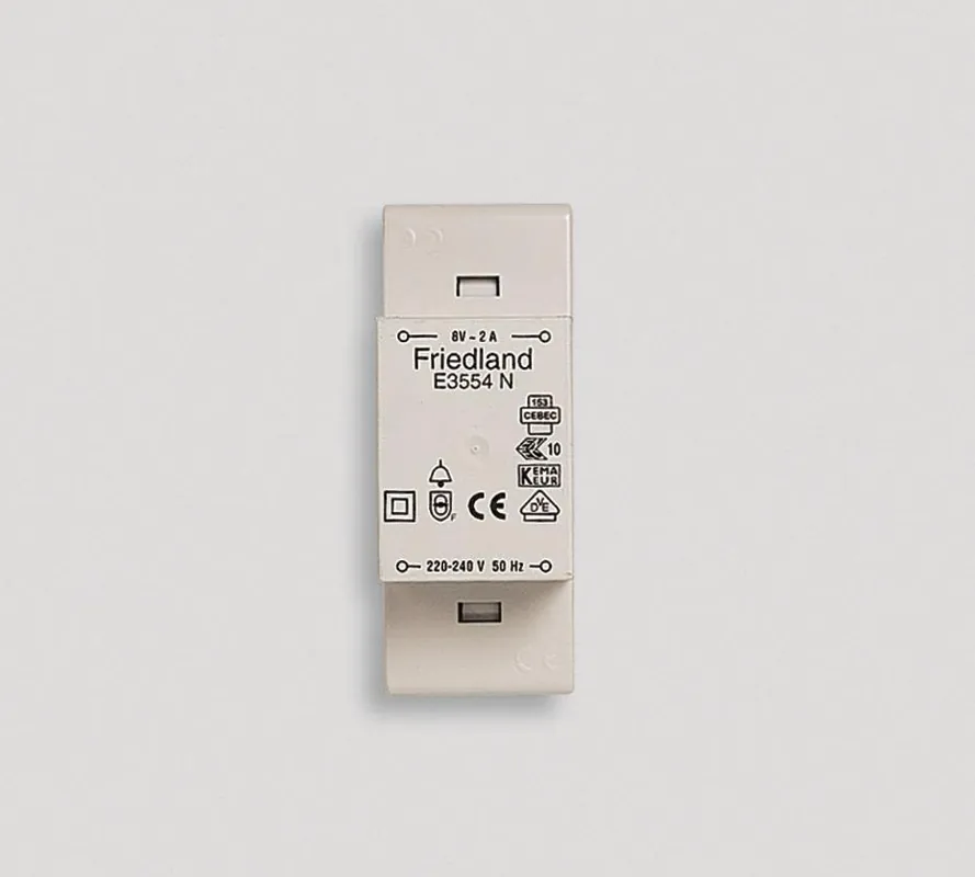 Honeywell Home E3554 är en ringledningstransformator för montage på 35 mm DIN-skena/apparatskåp eller utanpåliggande. Levereras med skyddslock för anslutningsklämmorna.