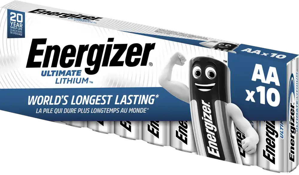 Energizer Ultimate Lithium är ett 1,5 V litiumbatteri med mycket lång livslängd, som också klarar svåra väderförhållanden och mycket höga och låga temperaturer. Idealiskt för apparater med stort effektbehov.
