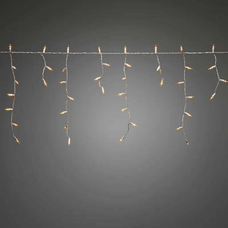 Konstsmide 2771-802 är en istappsslinga med 200 amber LED och vit kabel 31V/IP44.