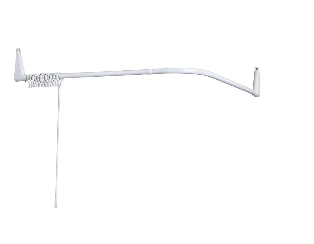 Vinkelstång avsedd för badkar och duscha, med möjllighet till 12 olika kombinationer. Fribärande utan takstöd. Med dragstav, 12 duschdraperiringar och vändbara stabila konsoler av nylon. Plastöverdragna stålrör.