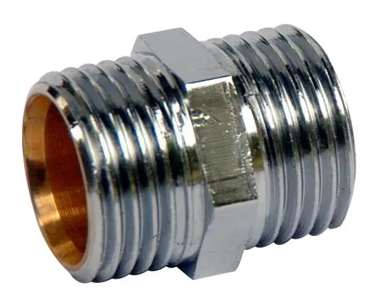 För koppar-, stål- och PEX-rör. Till mjuka och halvhårda koppar- och stålrör samt PEX-rör skall stödhylsor användas. G=cylindrisk rörgänga. Utvändig gänga, förkromad.