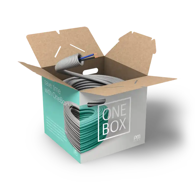Flexrör med fördragen värmebeständig kabel. ZERO är en förpackningslösning som förenklar installationen, speciellt utvecklad för att förhindra att ringar skapas vid utdragning av flexröret.