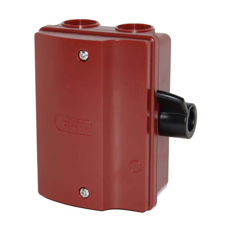 GARO AB strömbrytare är avsedd för 16 A och levereras som komplett apparat i kapsling med frontkapslingsklass IP65. Manöverelementet är en svart vippströmställare och huvudströmkretsen ansluts med kabelklämmor. Produkten är utförd för användning som huvudbrytare och kan spärras/låsas. Den är lämplig för fyrhåls frontmontage och centralt frontmontage samt för inbyggnad i fördelningar och för mellanmontage. GARO AB strömbrytare är avsedd för industri-, bostads- och offentliga miljöer och är godkänd för lantbruksmiljö, och levereras som standard med anslutningsmöjligheter för noll- och skyddsledare.