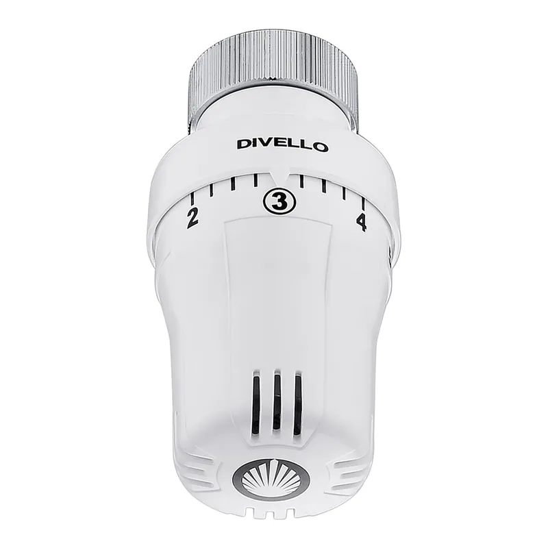 Radiatortermostat med inbyggd givare för direktanslutning på Danfoss Ø22/Klick (RA) termostatventiler. DIVELLO ECONOM™: Radiatoroberoende och energieffektiv originalprodukt. DIVELLO LIQUID H-TECH™: Vätskefyllt sensorelement med hög stängkraft – säkerställer stabil och exakt temperaturreglering samt problemfri användning. Color Connection: Färgkodade produkter, förpackningar och guider som förenklar identifiering samt utbyte av existerande termostater. Calibrated Connection: Exakt anpassad till respektive termostatventil – säkerställer korrekt och enhetlig reglering av samtliga termostatventiler oberoende av fabrikat. Internal Blocking: Intern temperaturbegränsning – försvårar inte bara utan omöjliggör manipulation av min- och maxtemperaturen. Robust Design: Solid och robust konstruktion som är enkel att hålla ren.