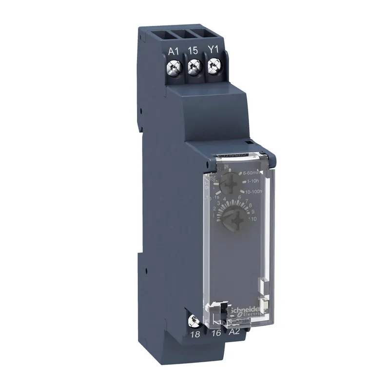 Harmony RE17 är en serie kompakta tidreläer för enkel montering på en DIN-skena. Med sina endast 17,5 mm. i bredd tar den bara lite av det värdefulla utrymmet i panelen. Tidreläets låga djup gör också att den kan placeras bakom ett lock framtill på brädan om så önskas. Det genomskinliga frontskyddet skyddar tidreläet mot damm och smuts. Det är också möjligt att låsa den för att skydda mot oavsiktlig justering av tidreläet.