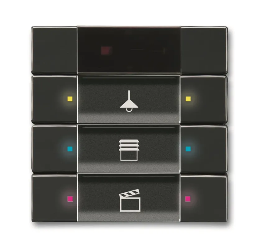 Multifunktionstryckknapp med textfält och RGB dioder som kan programmeras att lysa i olika färger beroende av vad som styrs. Används med Busskopplare 6120/12-101 men fungerar också med busskopplare 6120/28. Täckramar och busskopplare beställs separat.