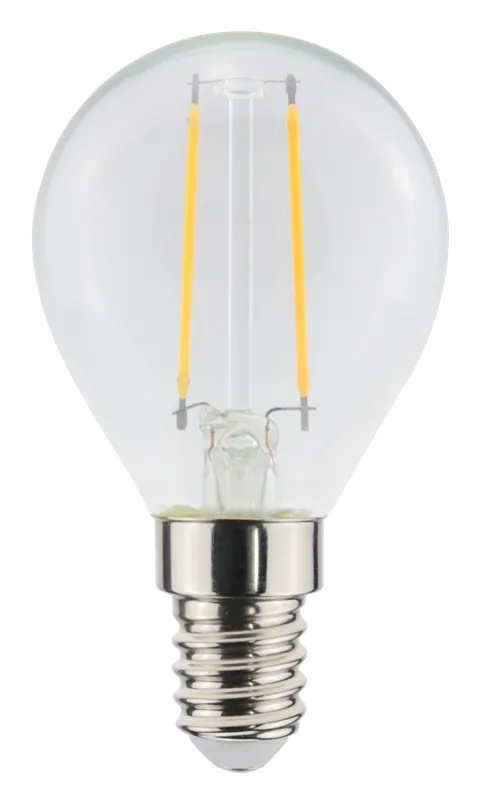 LED-lampa i klassisk klotlampsform med filament-teknik. Perfekt för dekorativa installationer och för allmänbelysning i hemmet. Kan användas utomhus endast i utomhusarmaturer, minst IP44.