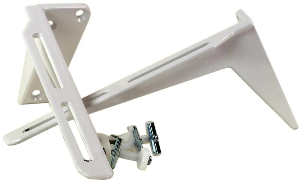 Gelia 3013028072 är en tvättställskonsol av plastbelagd aluminium med 3 skruvhål inkl. 4 T-bult. Levereras parvis.