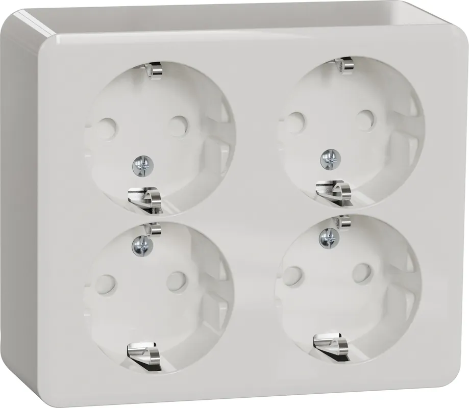Jordat och petskyddat vägguttag i modernt utförande utan synlig ram. Passar både i nya och äldre miljöer, och i de flesta av husets alla rum. För utanpåliggande montage, med skruvanslutning. Komplett produkt. IP20, men IP21 då kabeln förs in underifrån. Det utanpåliggande vägguttaget har samma blanka vita färg som den infällda Exxact-serien.