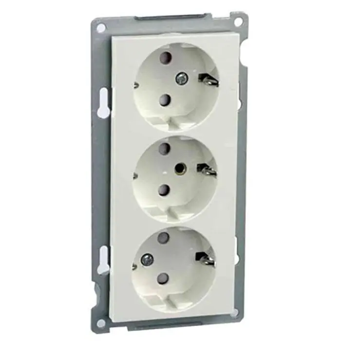 Elko Plus är ett 3-vägs jordat vägguttag för kombinationsmontage. Uttaget kan monteras i dubbeldosa tillsammans med lämplig kombinationsram och kan även monteras utanpåliggande tillsammans med förhöjningsram.