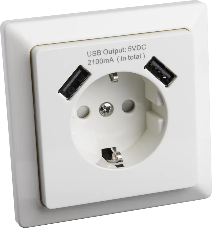 Gelia 4000038442 är ett infällt 1-vägs vägguttag med 2 st USB-uttag. Ger totalt 2,1 A.