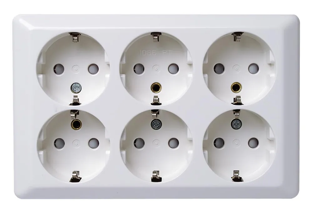 Elko EKO07484 är ett vägguttag med 6 st schukouttag och bottenplatta av halogenfri termoplast. Bottenplattan har nyckelhål med ”knock-outs” för montage på apparatdosa. Skruvanslutning av ledarna. Dubbla anslutningar per fas. För montage på dosa eller direkt på vägg. Uttagsbrunnarna kan delas upp och styras i par via strömställare. Plats finns för 3 stycken extra överkopplingsklämmor på bottenplattan. Levereras komplett med 3 st extra överkopplingsklämmor. Dragavlastare medföljer ej.