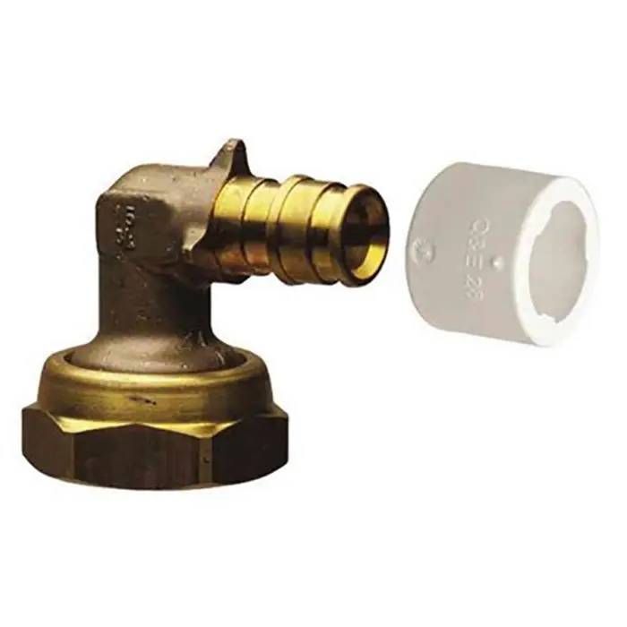 Uponor 1870186 är en vinkel som är utrustad med löpande mutter och som levereras komplett med planpackning. Tillverkad i avzinkningshärdig mässing och med böjningsvinkel 90°.